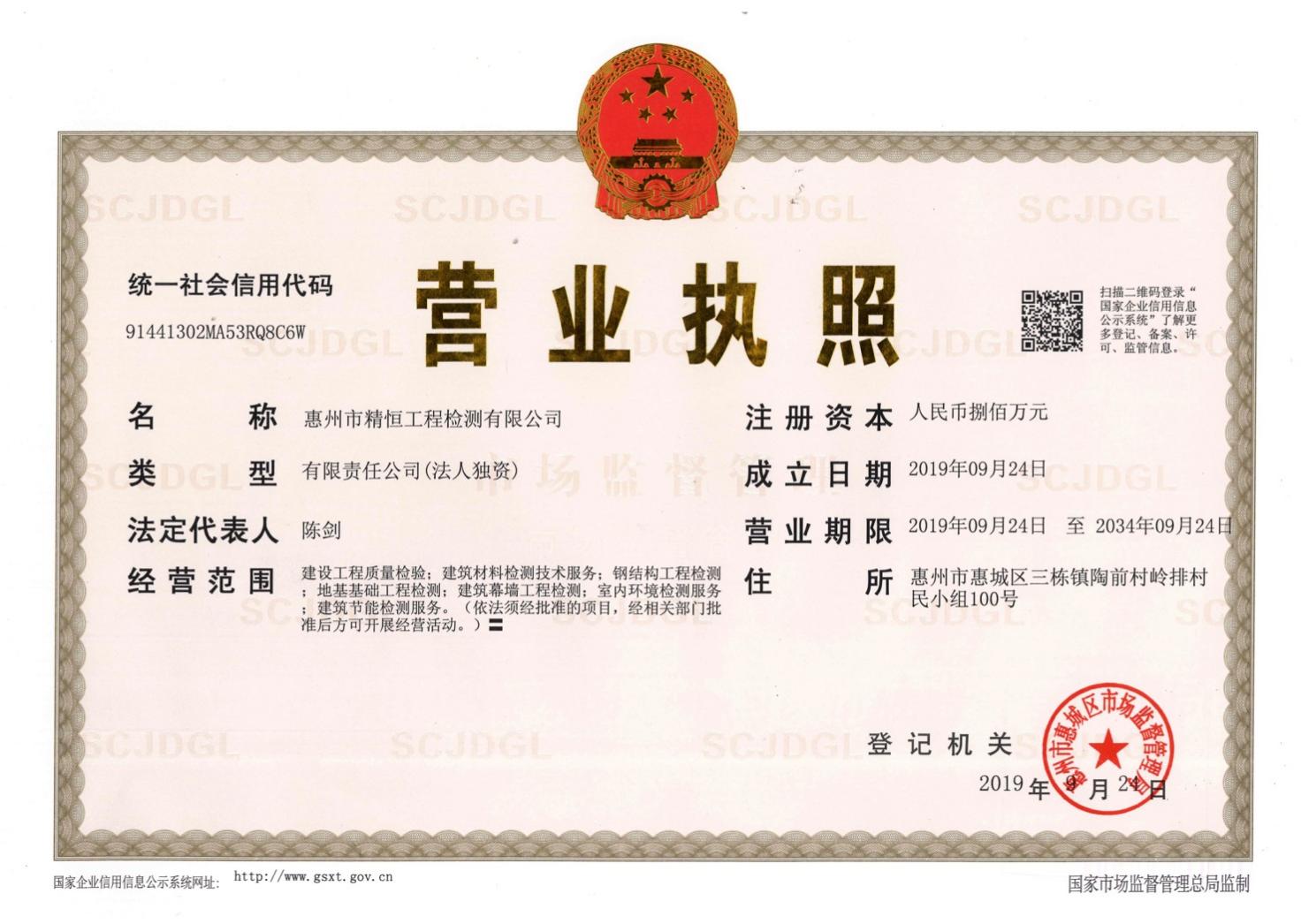 惠州市精恒工程检测有限公司是乐鱼网站web版旗下的全资子公司,位于惠州市惠城区三栋镇陶前村岭排村民小组100号,成立于2019年9月24日,注册资本800万元,是一家专业从事第三方检测、具有独立法人资格的检验检测服务机构。